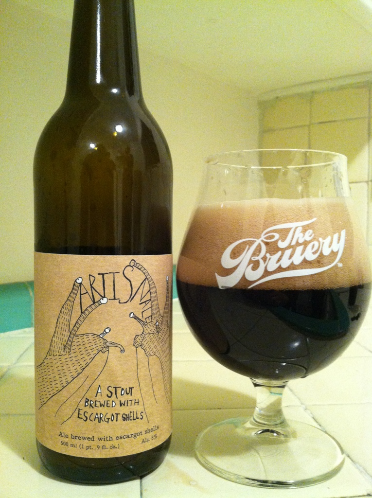 Alright stay with me here, I know this is a little crazy, oyster stout brewed with snail shells? I guess I should preface this entire review by saying 1) I don’t like oyster stouts in general and 2) I don’t eat snails, unless I am in a third world country and I am doing it for the lulz to show them I am just like thems. That being said, I will skull any beer and have zero regrets, well ok maybe SOME REGRETS.