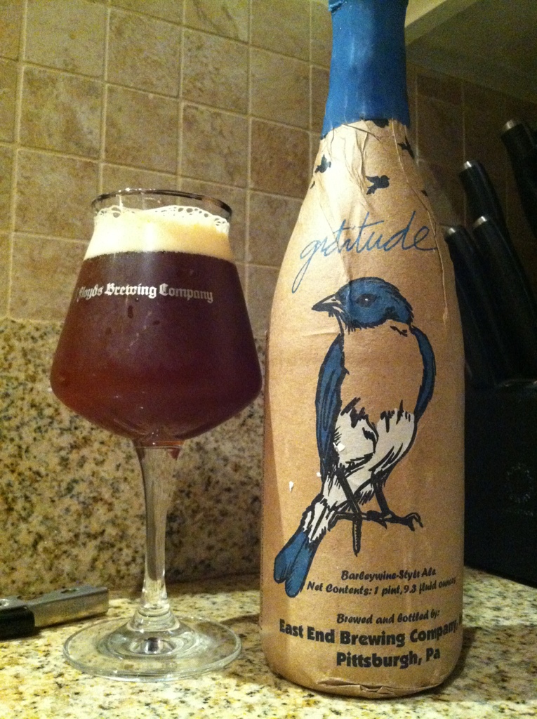 Image 0 East End 2009 Gratitude, we put birds on things Most robust raisin and fig profile ever. Best non BA Barleywine hands down Share this: Click to share on X (Opens in new window) X Click to share on Facebook (Opens in new window) Facebook Like Loading... Related