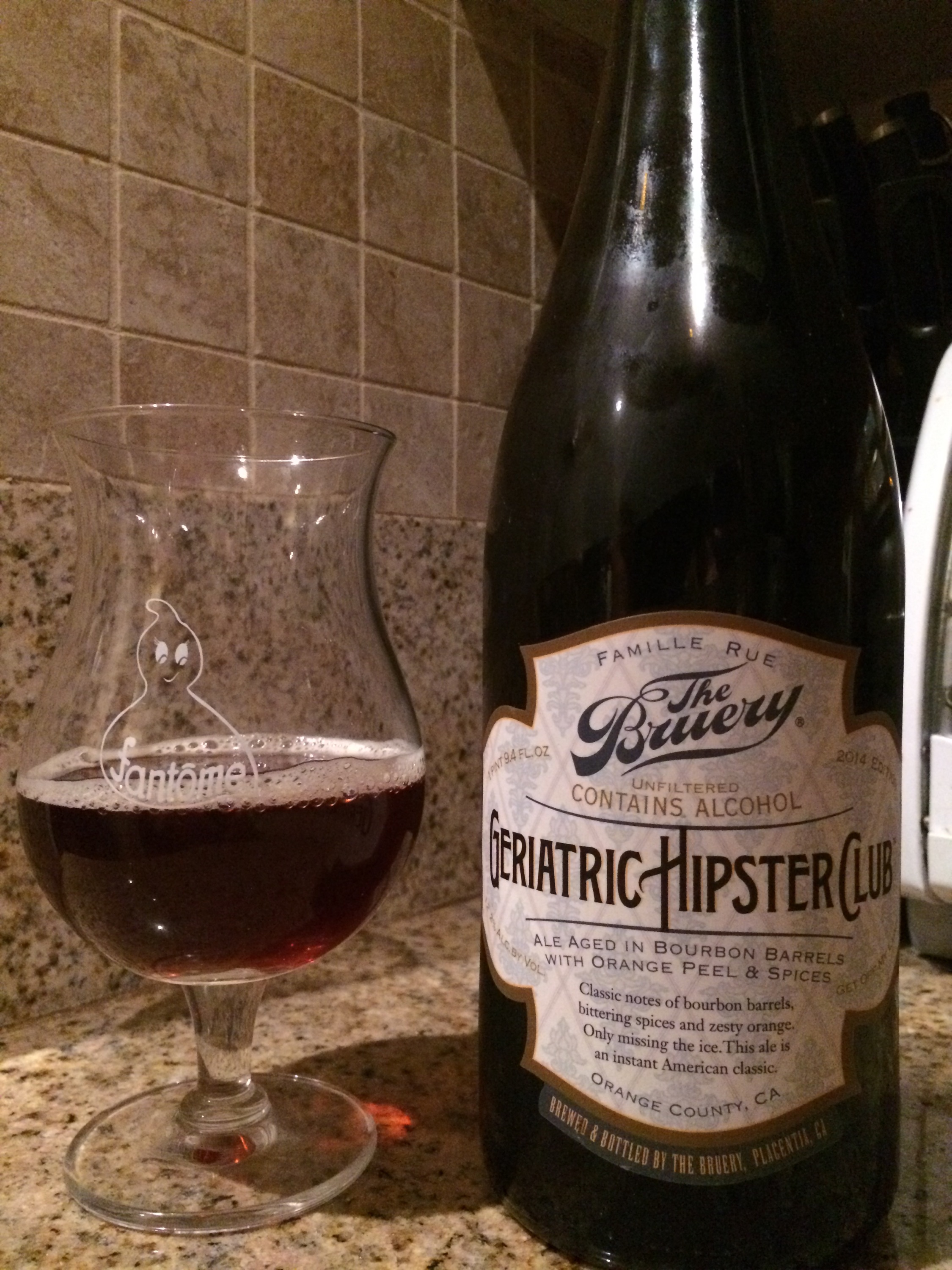 If you had bourbon ba cuir, imagine a more attenuated version with candied orange peel and a lingering spice aspect. With the bourbon old ale base riffing from their anniversary beer half of the old fashioned sort of battle has been won, but in the closer there is a spice aspect where sweet bitters should be. Some would say a cherry or cocktail aspect is wanting to round out the profile.