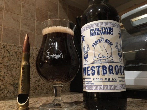 And as expected it’s a touch thin, almost sauntering into the porter realm, walnut pecan with a tannic presence from the cognac like burnt toast and prunes. The finish has a solvent aspect to it like wood varnish that is more unpleasant as it warms. There’s a nice raisin and toasted fig jam when it’s cold but the odd fusel and phenolic character as the temp ramps up that prevented me from killing this solo. Maybe it was the rolled up maxipad shunted in my urethra.