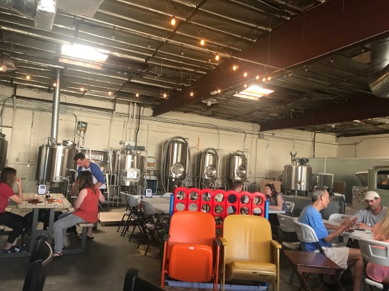 There’s a big Connect Four game and a toddler running and screaming about something. The most notable thing about this brewery was the plywood table pre-set for a game of beer pong. Not just tolerating but actively encouraging a carnival game of Red Cup dexterity. I really enjoy that. I am not being wry, I would legit go to a brewery just to play beer pong, that sounds amazing and perhaps illegal. The beers themselves are, ehh. The pale could be placed in a six pack lineup and you wouldn’t be able to identify which Two Row Chinook criminal assaulted you. It’s textbook to the point of feeling like a reference chart, light pine, mid 2000s panache of clean swallow and mild honey and arugula. It’s pretty solid and it is their best beer. I only tried three of the six beers on tap.